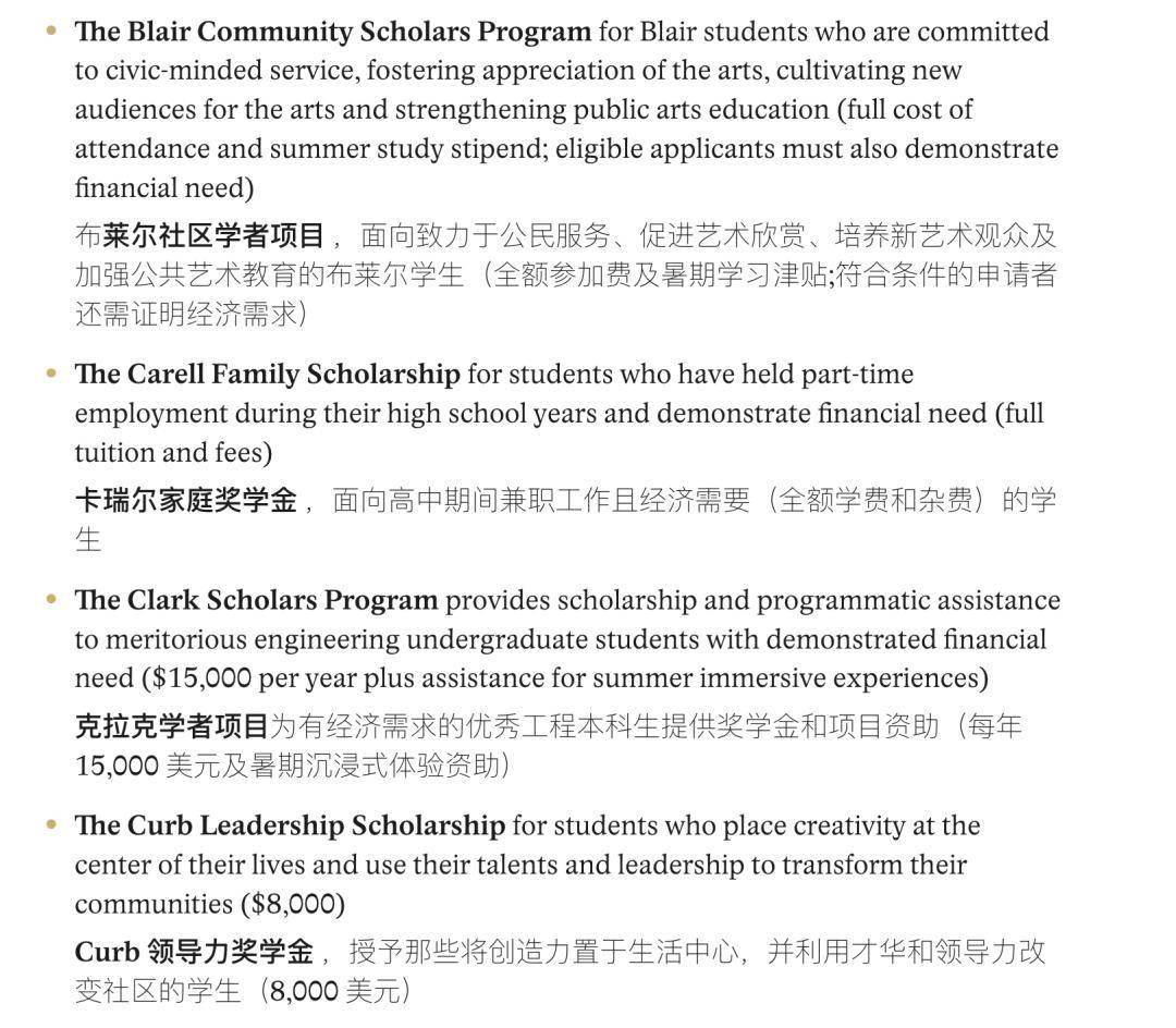 像纽大这样设置有奖学金政策(Merit-based scholarship)的大学还有很多且金额可观。